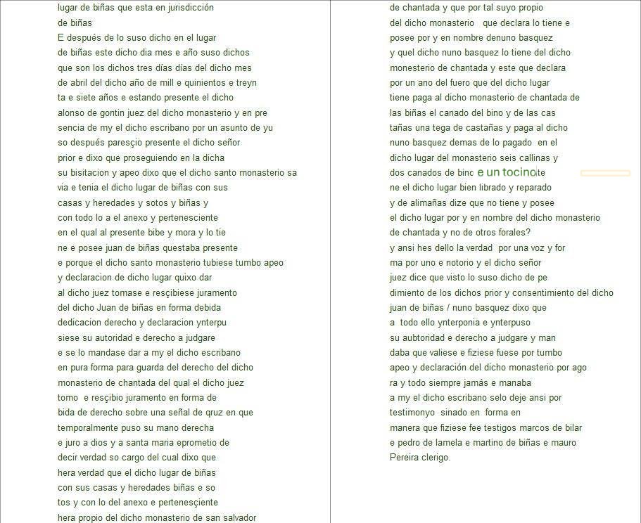 Publicamos el presente documento porque refleja la complicación del sistema de propiedad de la tierra durante el Antiguo Régimen. Reproduce un caso típico de «apeo» que tuvo lugar en las tierras de Viñás (parroquia de Santiago da Riba, Chantada, Lugo) en el año 1537.